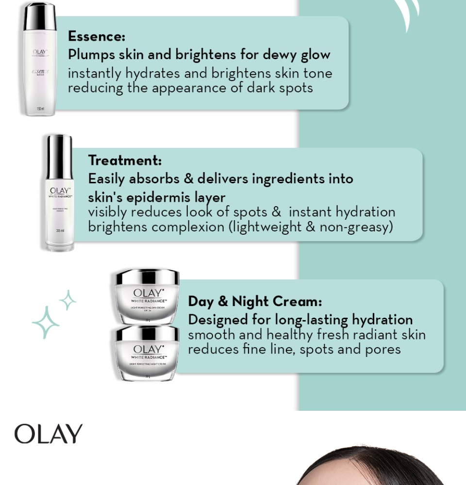 • Smoother, fresher, whiter & more translucent complexion.