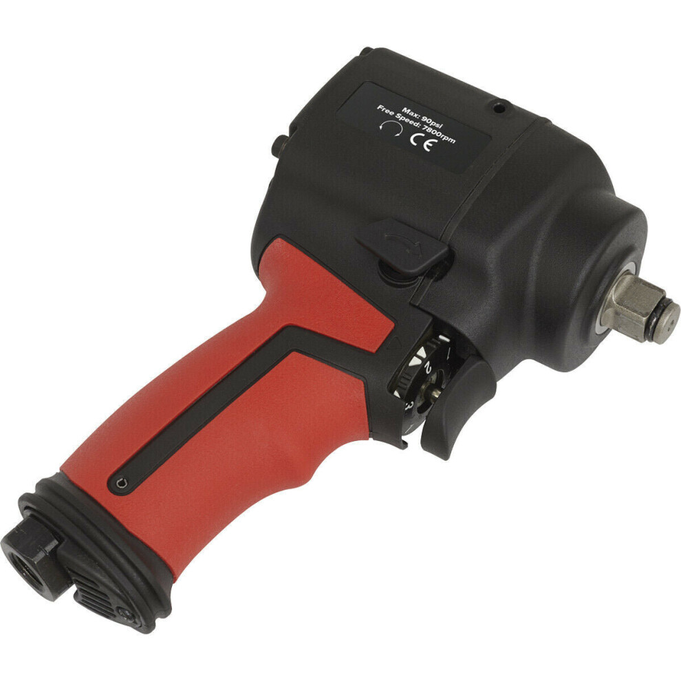 Stubby Air Impact Wrench - 1/2 Inch Sq Drive - Twin Hammer - 3-Speed Selector Description